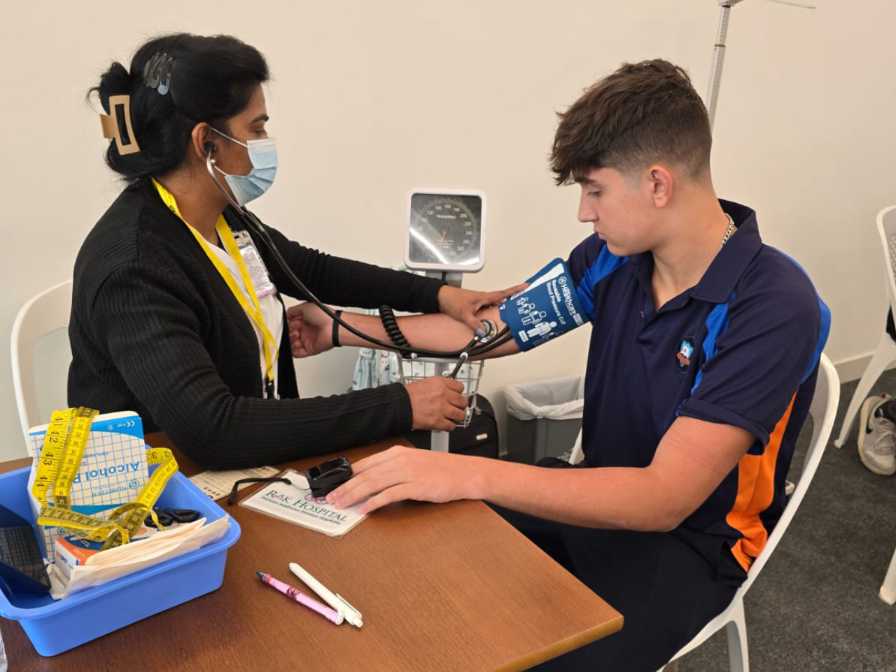 نظم مستشفى رأس الخيمة فحصًا صحيًا ضمن برنامج SAHI في أكاديمية رأس الخيمة، حيث قدم فحوصات صحية أساسية وشجع على الكشف المبكر والرعاية الوقائية بين المشاركين.